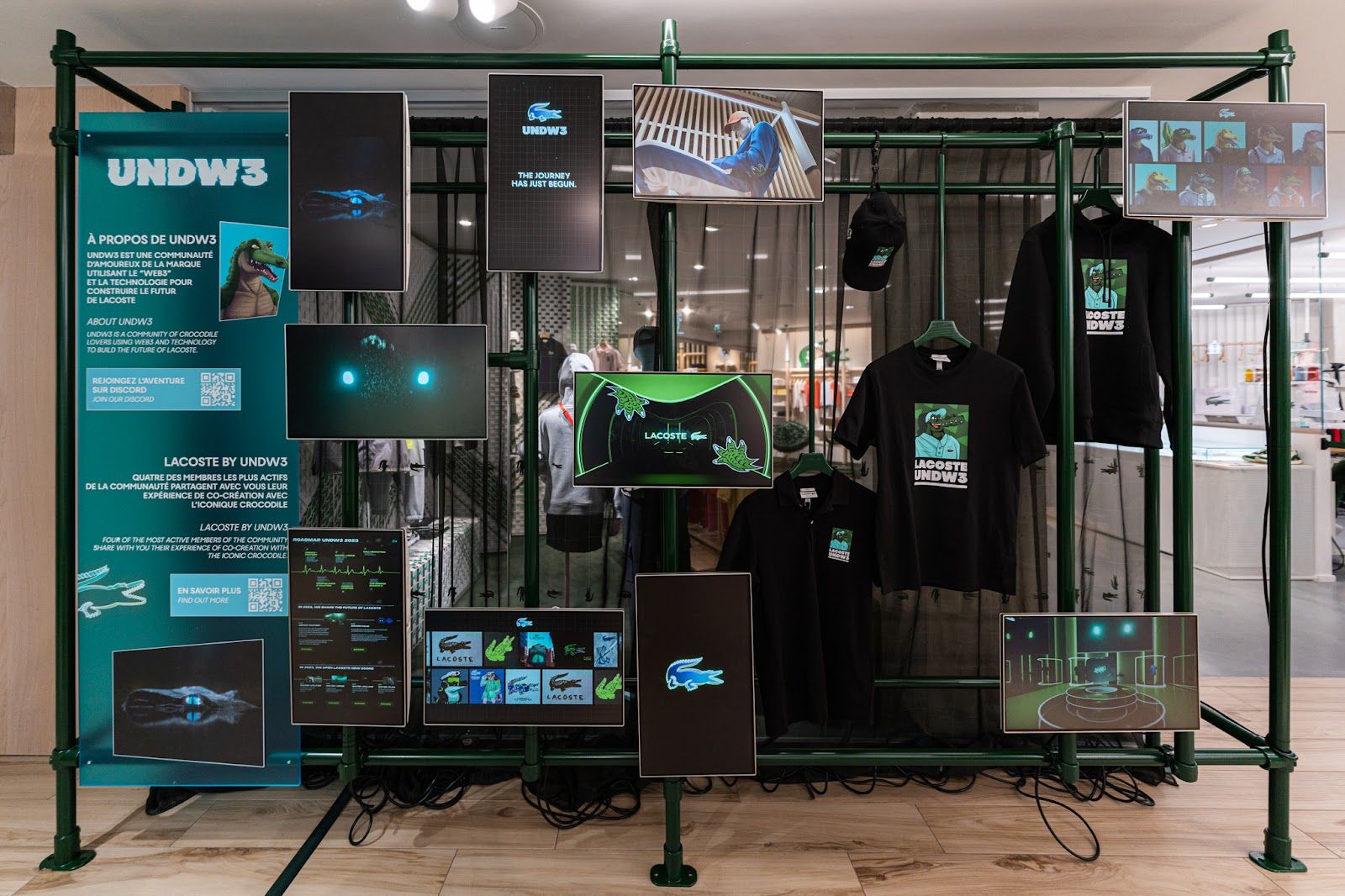 - The brand is offering new experiences to its customers. For Christmas, one of the busiest seasons for fashion, they collaborated with Emperia VR to open a virtual store. In this store, there was a secret room only accessible to NFT holders where five users were randomly picked for a special price. This increased return visits and further built loyalty among its visitors. They’ve also integrated UNDW3 into the IRL store experience, dedicating a section of their flagship Champs-Élysées store ‘Lacoste Arena’ to the community, and allowing holders to obtain an exclusive UNDW3 polo shirt on site.